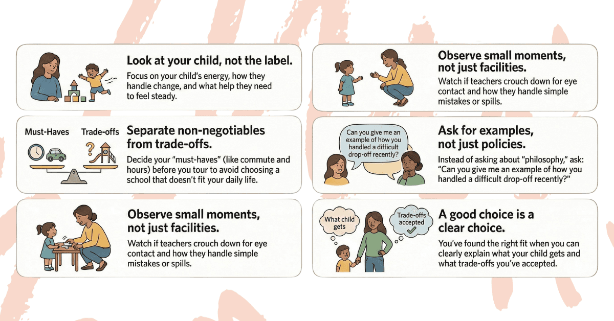 This guide will walk you through a practical process for choosing a preschool that works—not perfectly, but clearly and with less regret.
